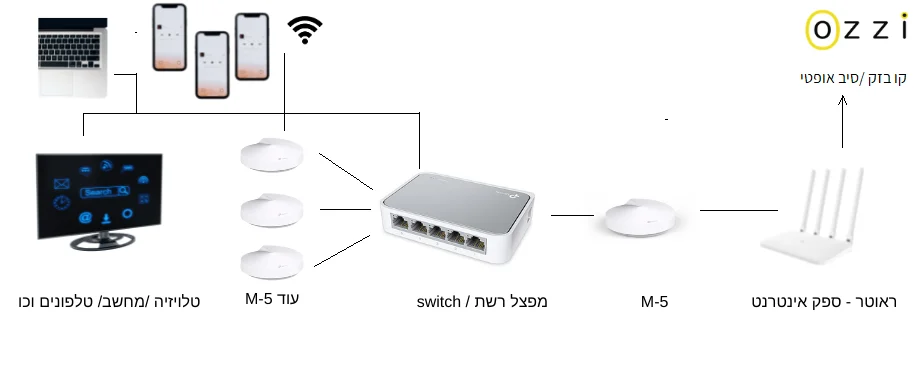 מוצרי הרשת שאנו ממליצים עליהם ובדקנו אותם עם רכיבי שלי הם סדרת ה Mesh של TP-Link למשל ה M5. ברכיבי מש כל רכיב יכול לשמש גם כראוטר במקביל להיותו מגדיל טווח ואנו ננצל זאת.
